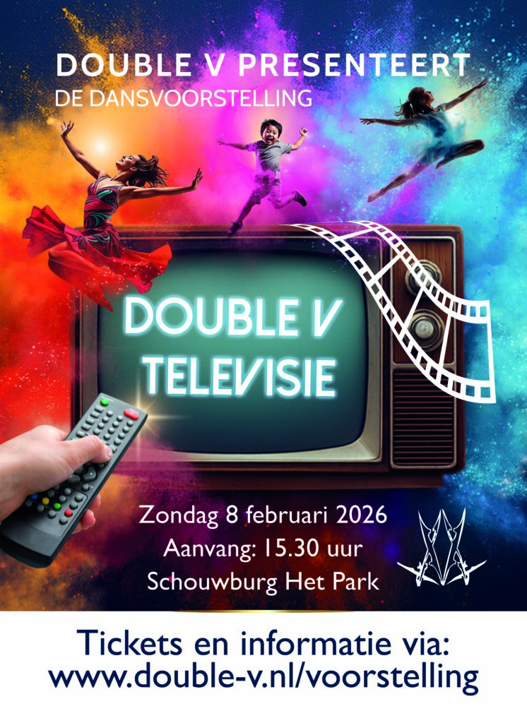 Zet de popcorn klaar, leun achterover en pak de afstandsbediening er maar vast bij! ✨ Tijdens de dansvoorstelling Double V TV op zondagmiddag 8 februari 2026 in Schouwburg Het Park zap je samen met onze dansers door de tv klassiekers van de afgelopen jaren.